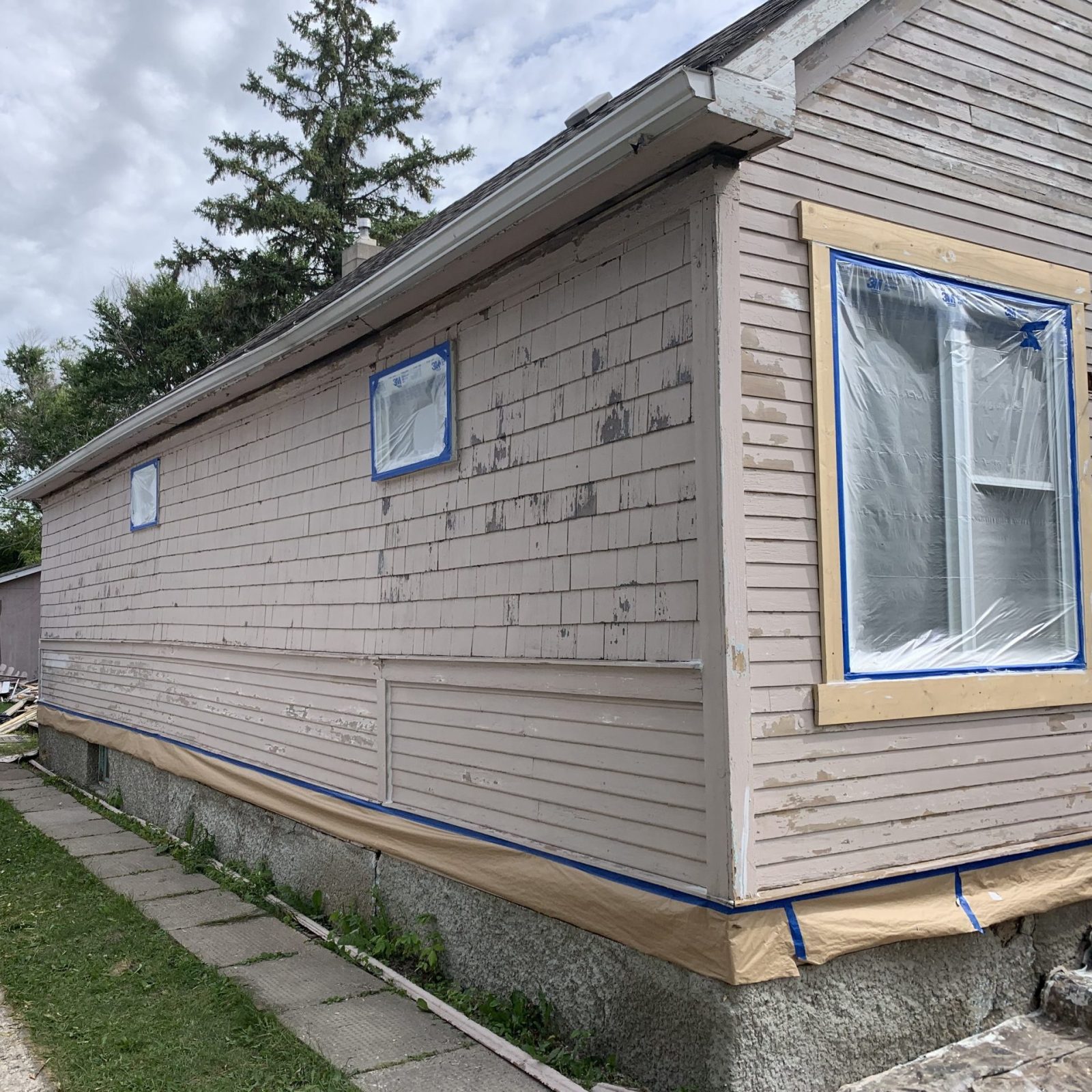 The process begins with a thorough power washing, which removes dirt, debris, and any stubborn, flaking paint. Once clean, the siding undergoes a heavy-duty scrape and full power sanding. This step smooths out rough edges and softens ghost lines left behind by old paint layers, creating a uniform surface ready for refinishing.